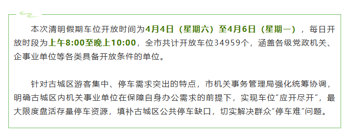 34959个停车位,免费开放!